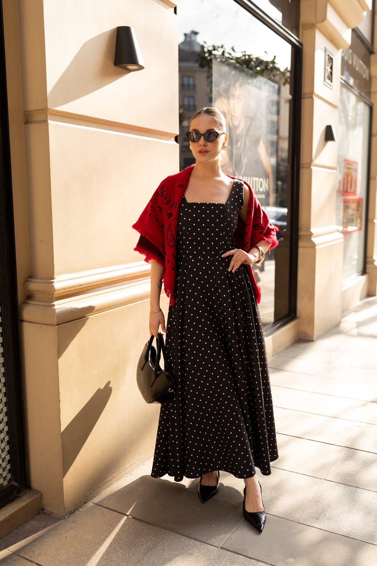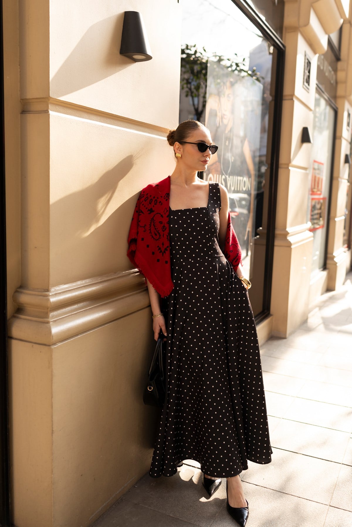 Siyah Kalın Askılı Arkadan Bağlamalı Puantiyeli Elbise Bej Kalın Askılı Arkadan Bağlamalı Puantiyeli Elbise