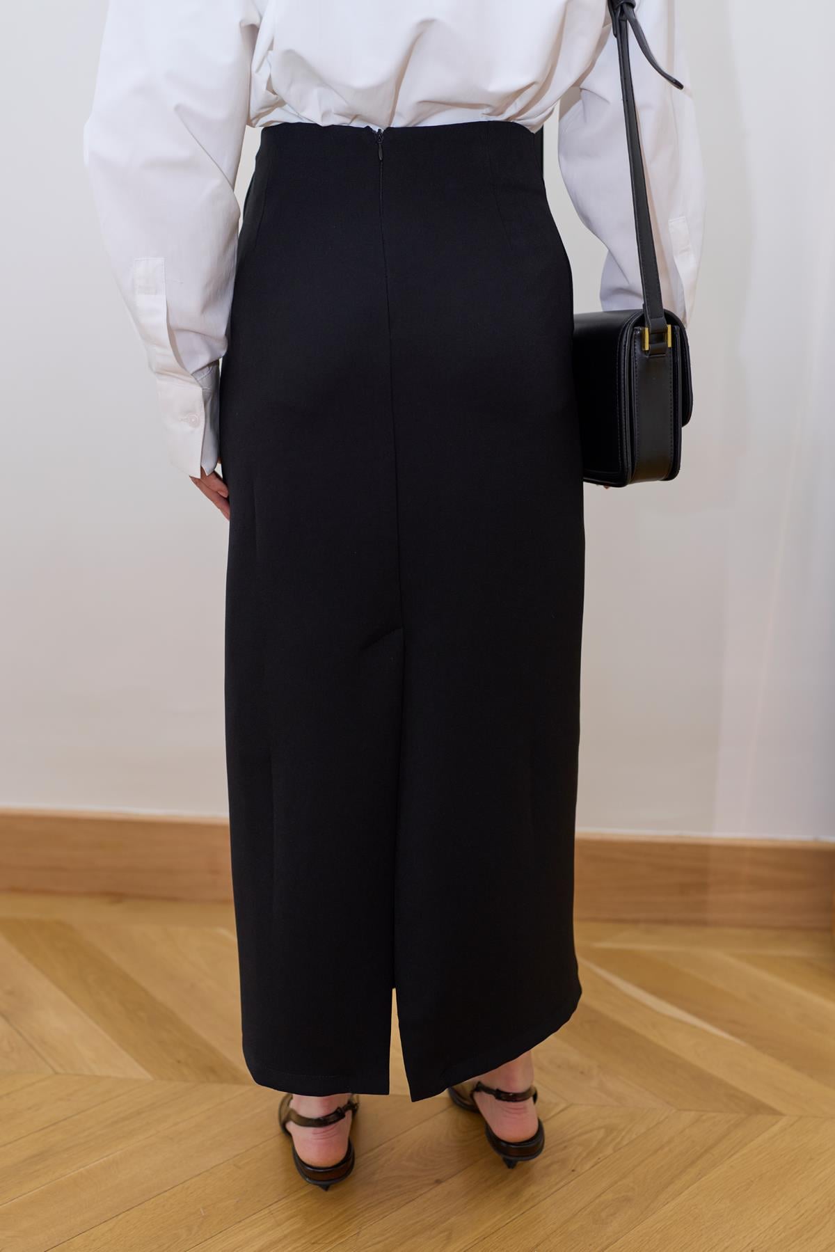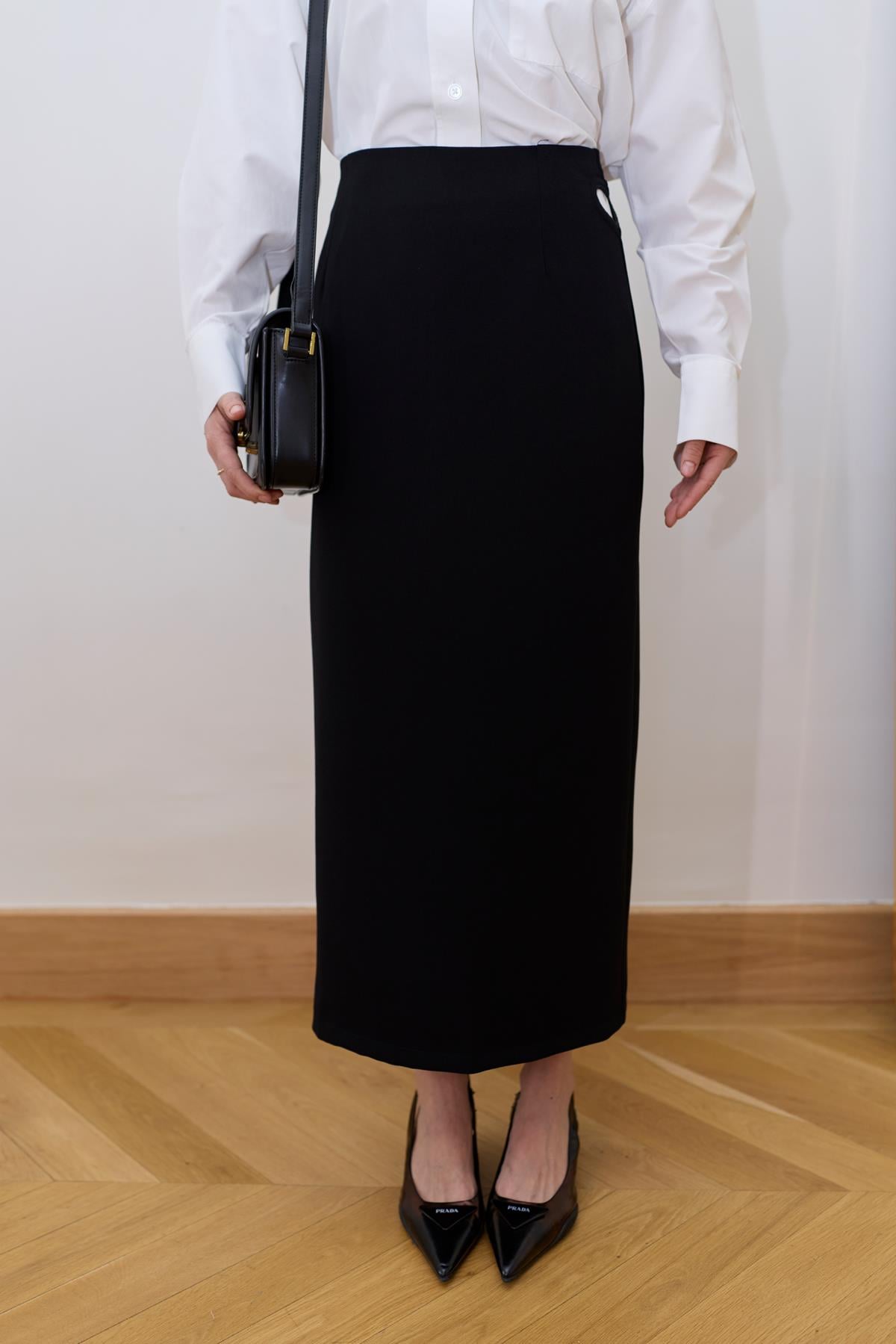 Siyah Kalp Dekolteli Midi Etek (109-00507)