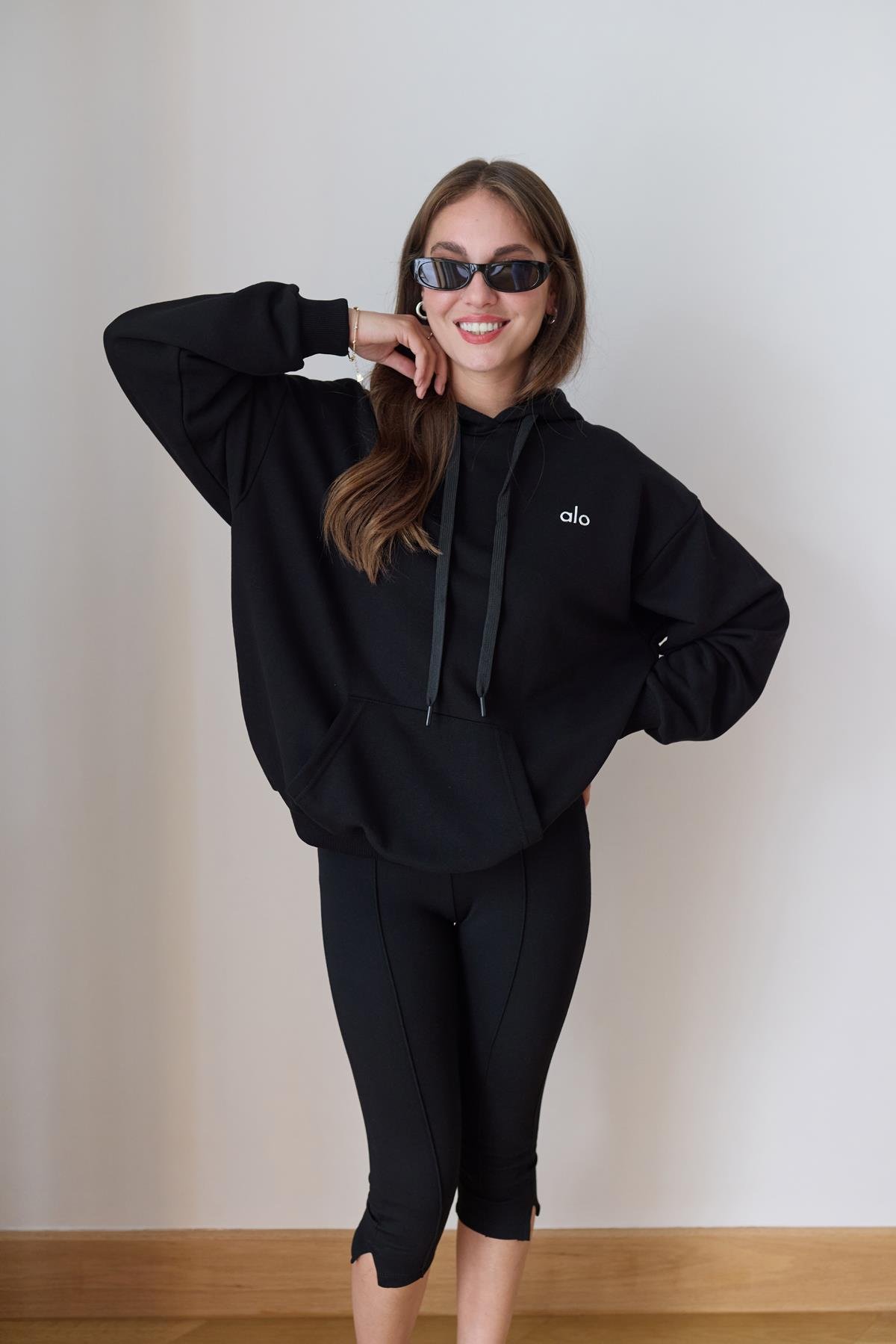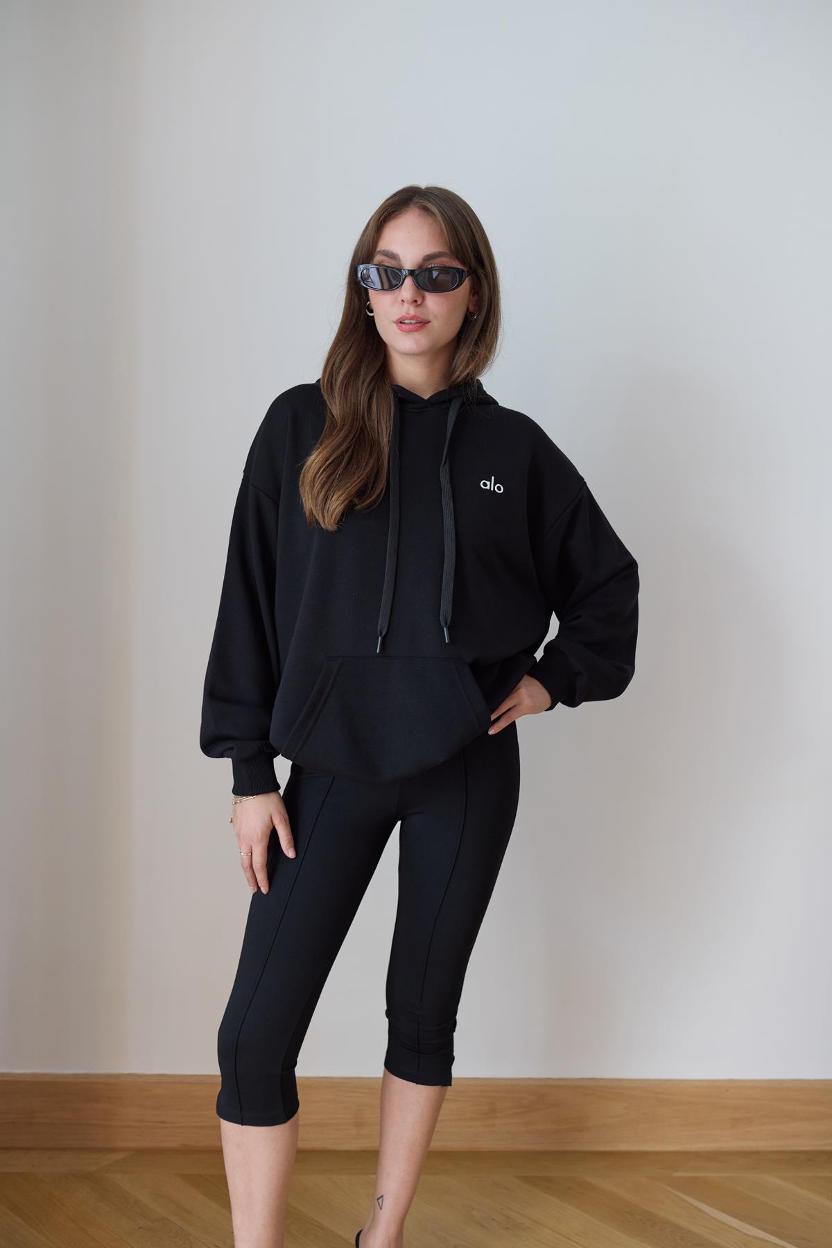 Siyah Kapişonlu Ve Kanguru Cepli Logolu Sweat (106-00308)