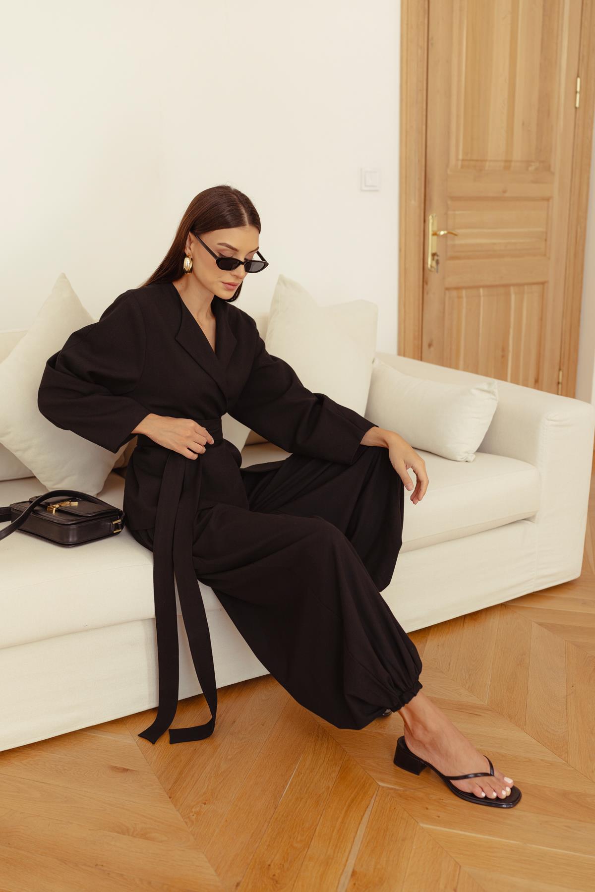 Siyah Paçası Ve Beli Lastikli Şalvar Pantolon (110-00755)
