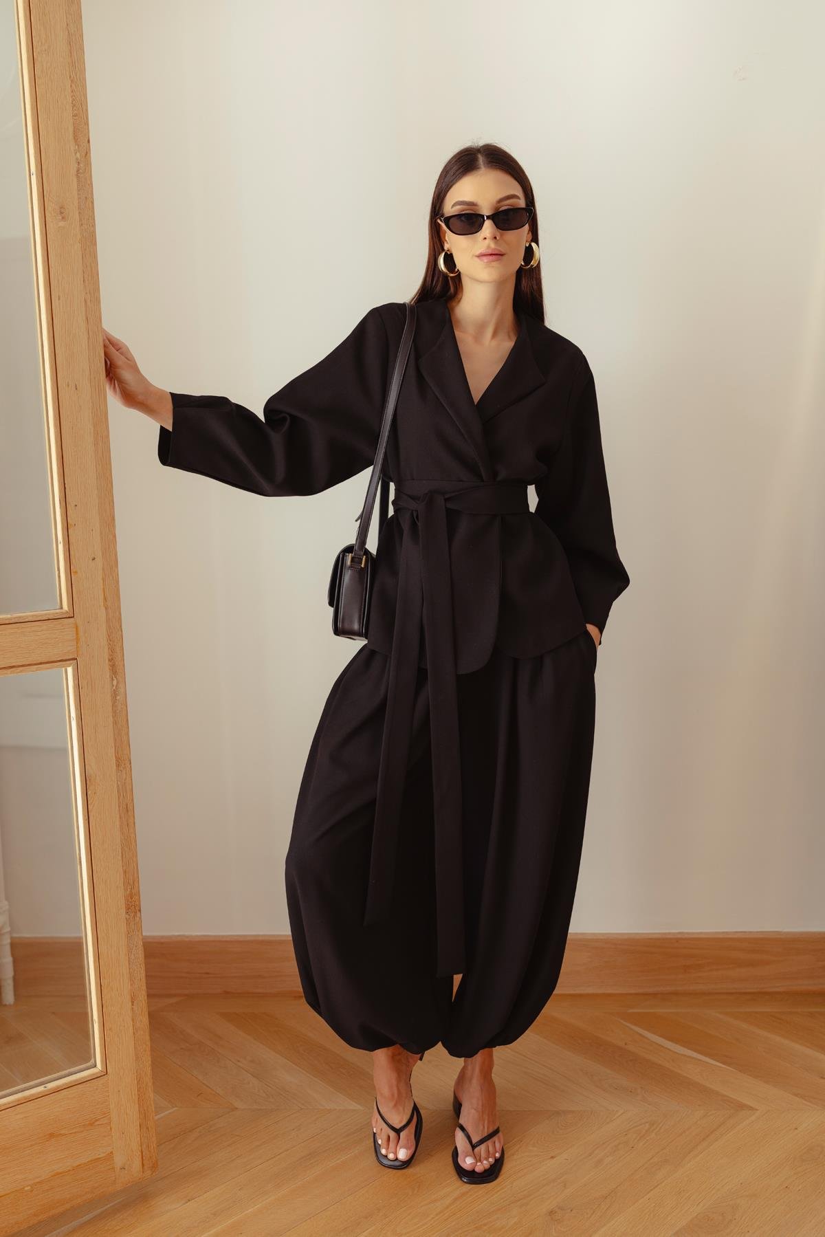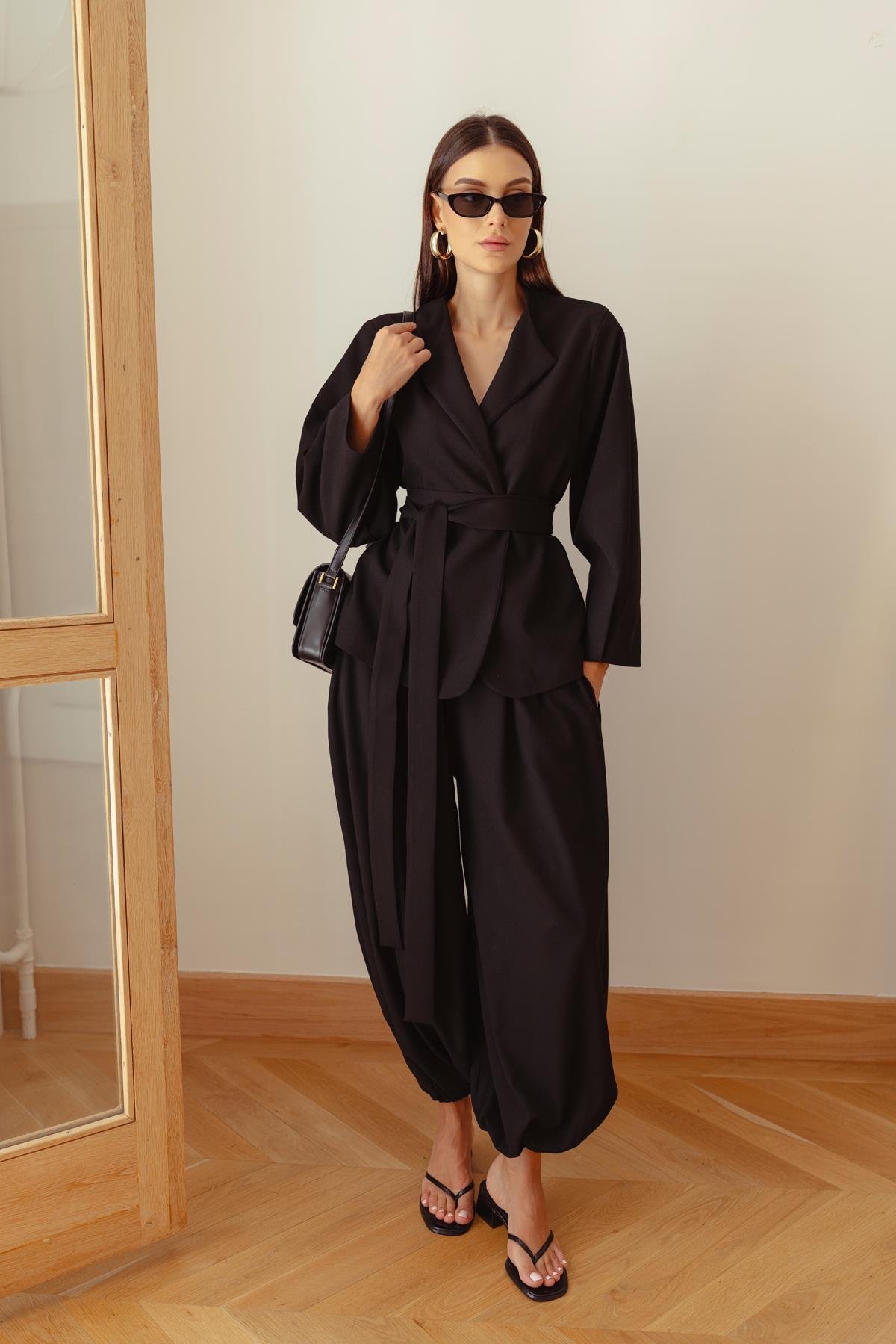 Siyah Paçası Ve Beli Lastikli Şalvar Pantolon Acı Kahve Paçası Ve Beli Lastikli Şalvar Pantolon