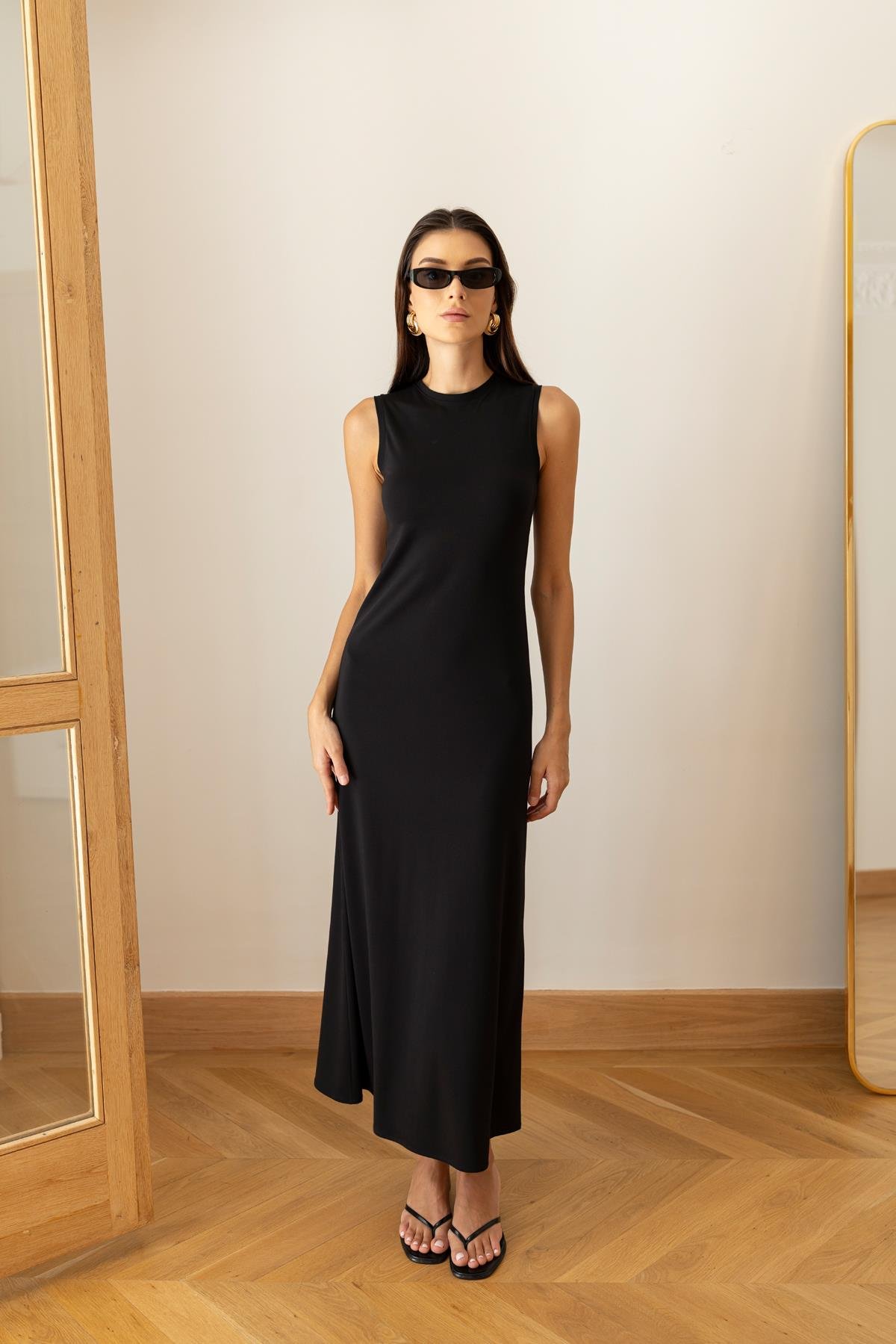 Siyah Pelerin Detaylı Bisiklet Yaka Kısa Koll Elbise Kahve Pelerin Detaylı Bisiklet Yaka Kısa Koll Elbise