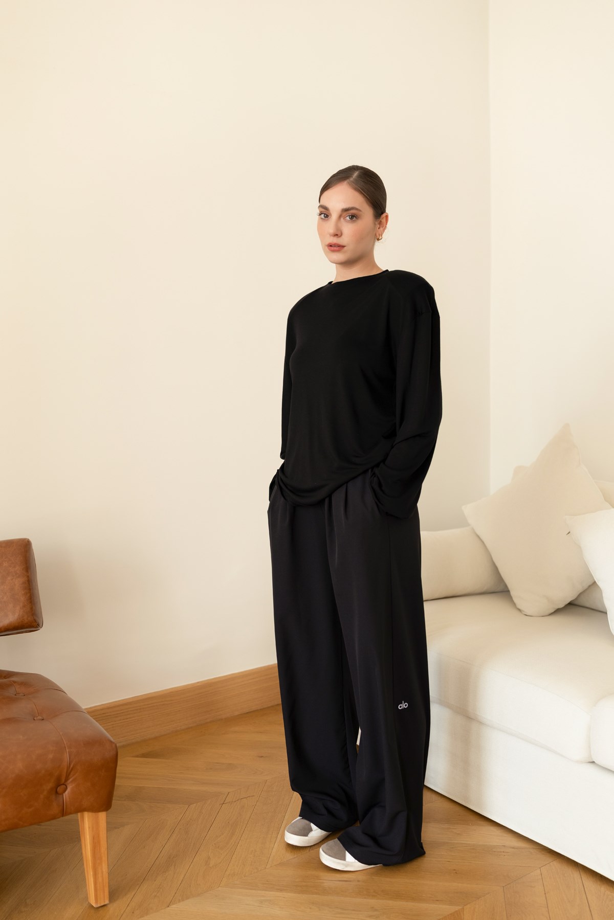 Siyah Vatkalı Oversize Uzun Kol Bluz Beyaz Vatkalı Oversize Uzun Kol Bluz