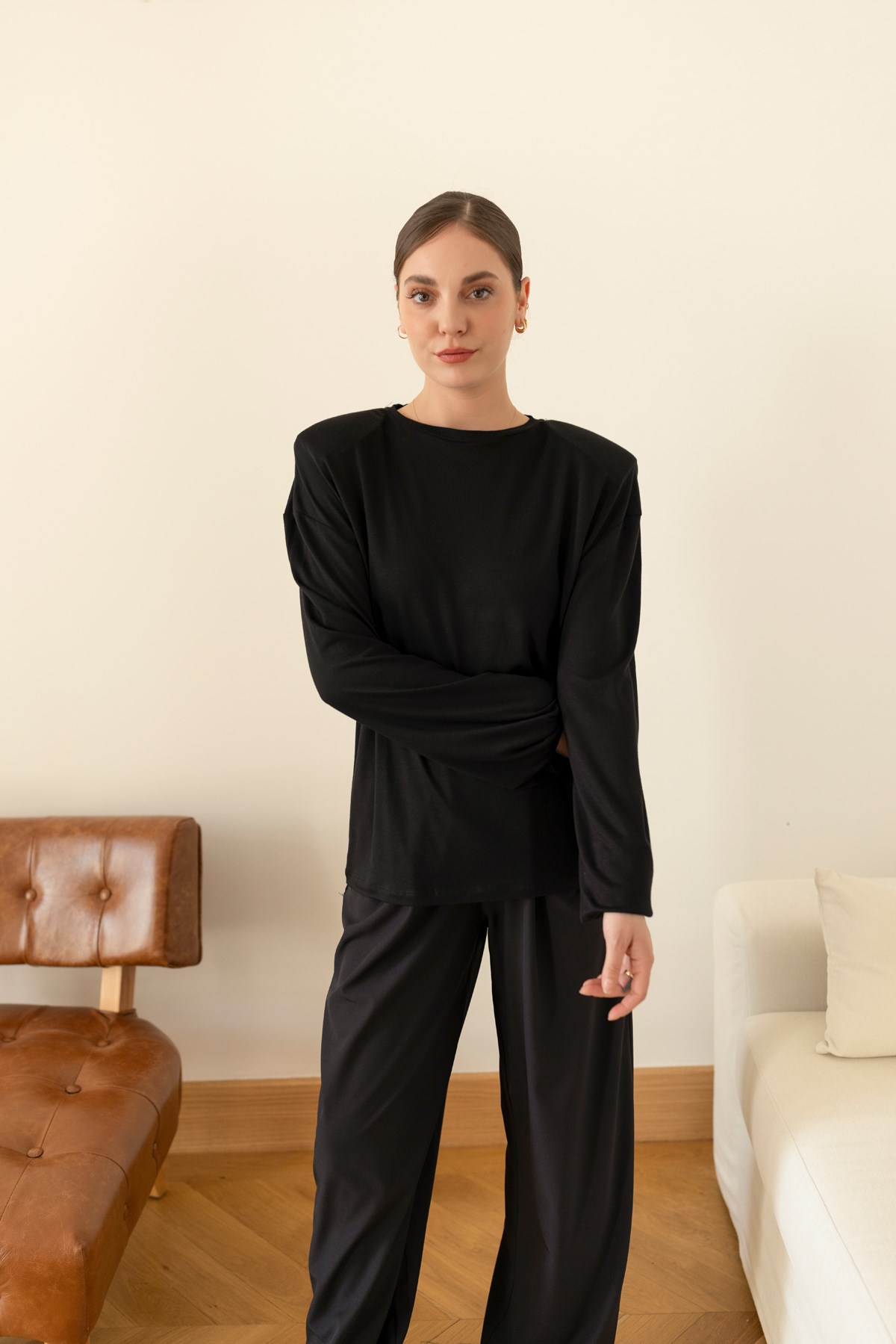 Siyah Vatkalı Oversize Uzun Kol Bluz (102-00755)