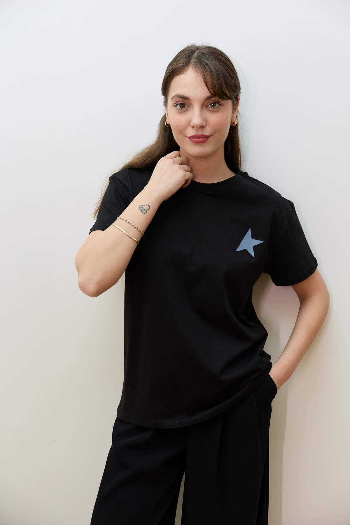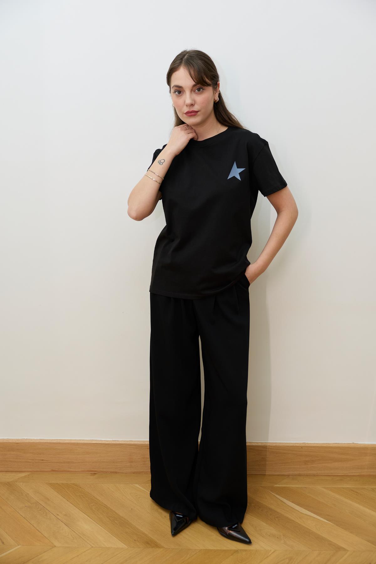 Siyah Yıldız Baskılı Basic T-Shirt (107-00500)