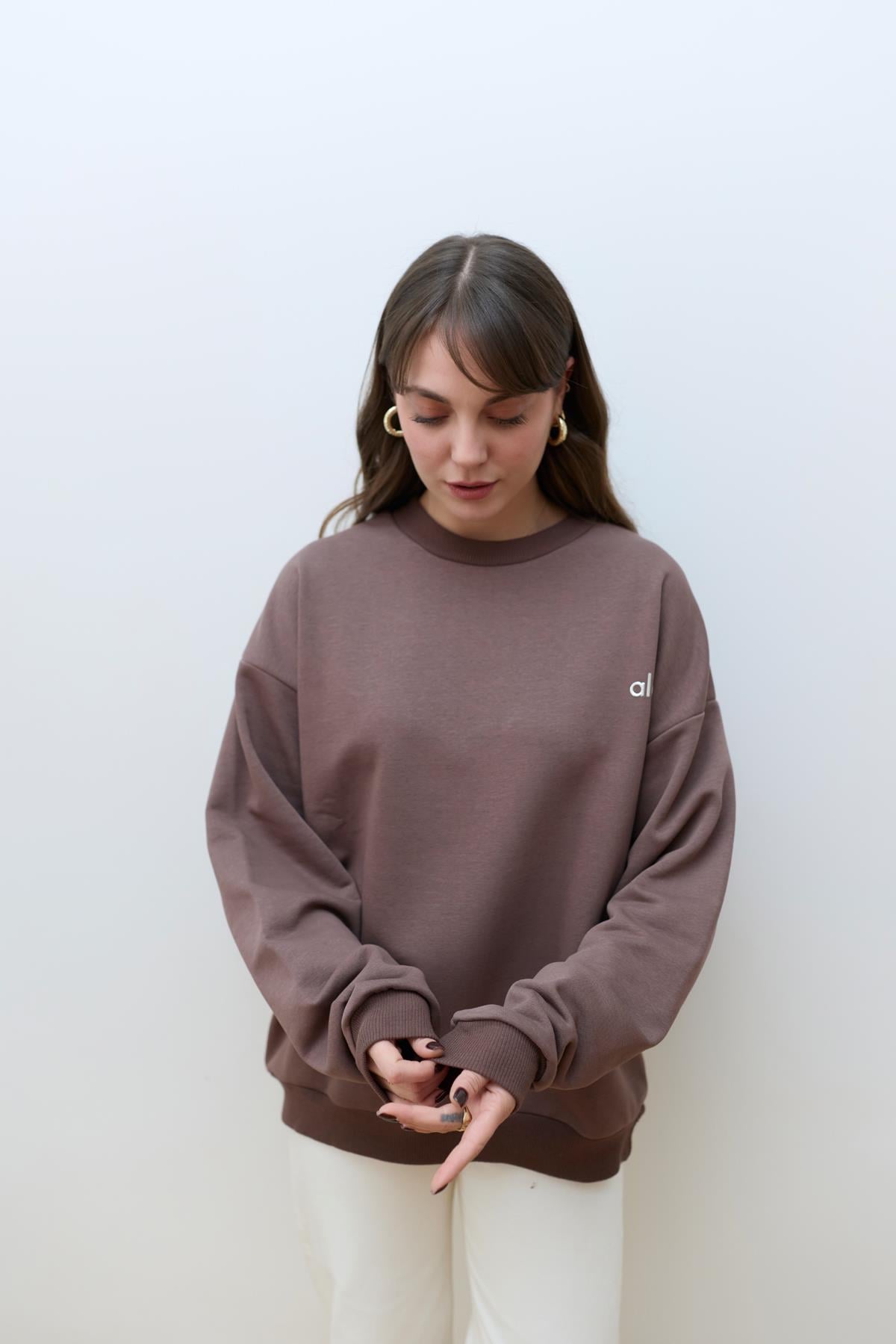 Sütlü Kahve Yazı Baskılı Basic SweatShirt (106-00301)