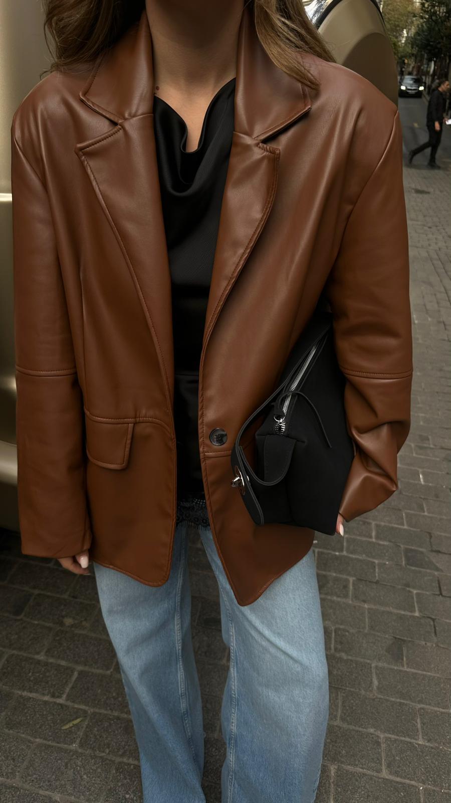 Taba Önden Cep Detaylı Blazer Deri Ceket (115-00634)