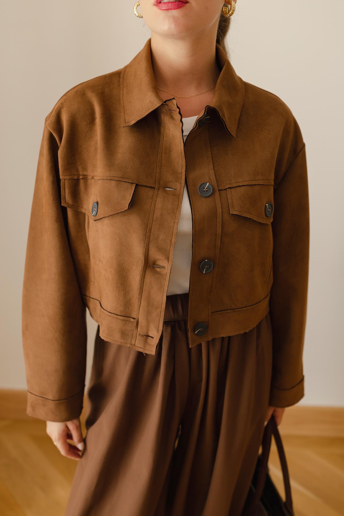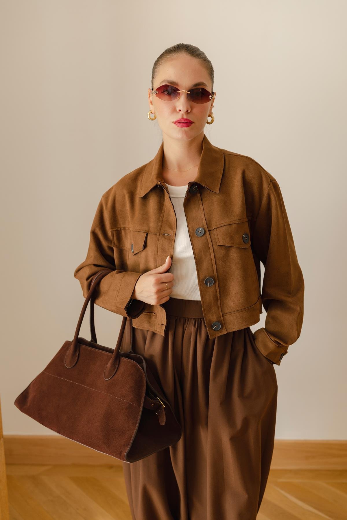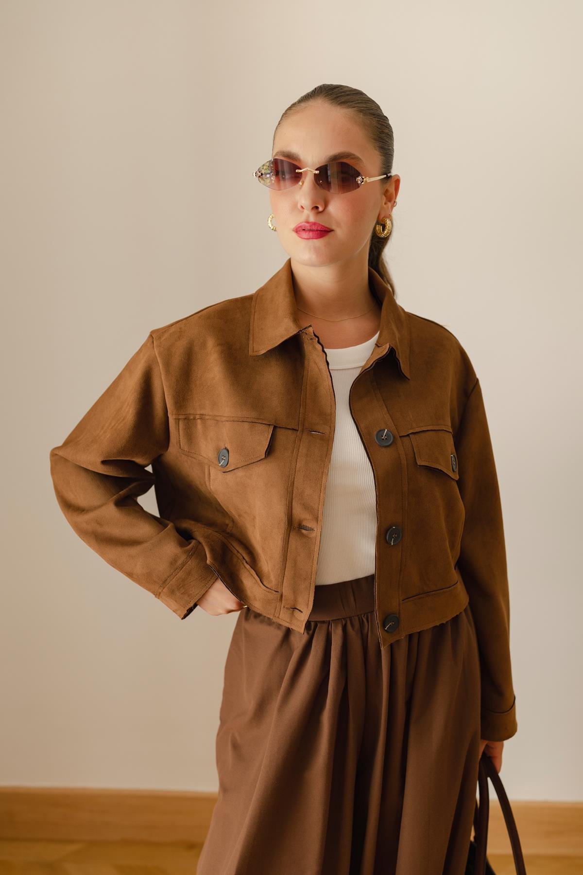 Taba Polo Yaka Kemik Düğme Detaylı Nubuk Ceket (115-00601)