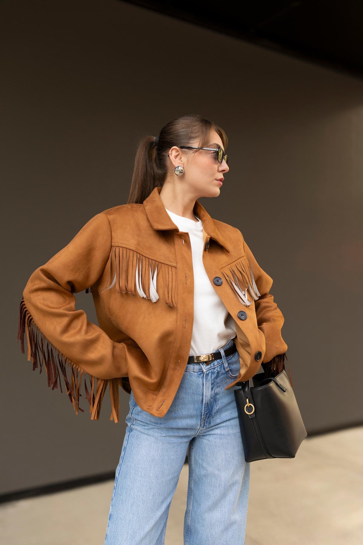 Taba Püskül Detaylı Nubuk Ceket (115-00624)