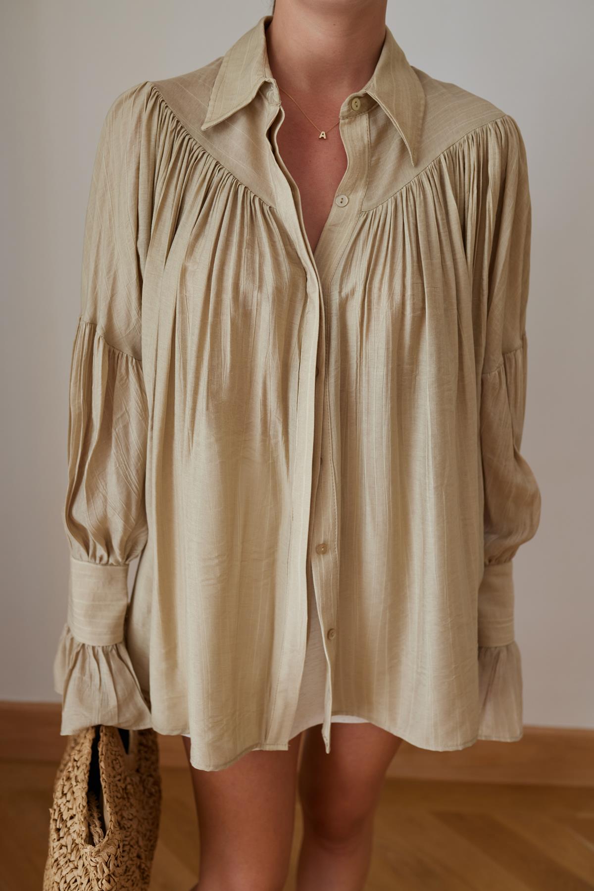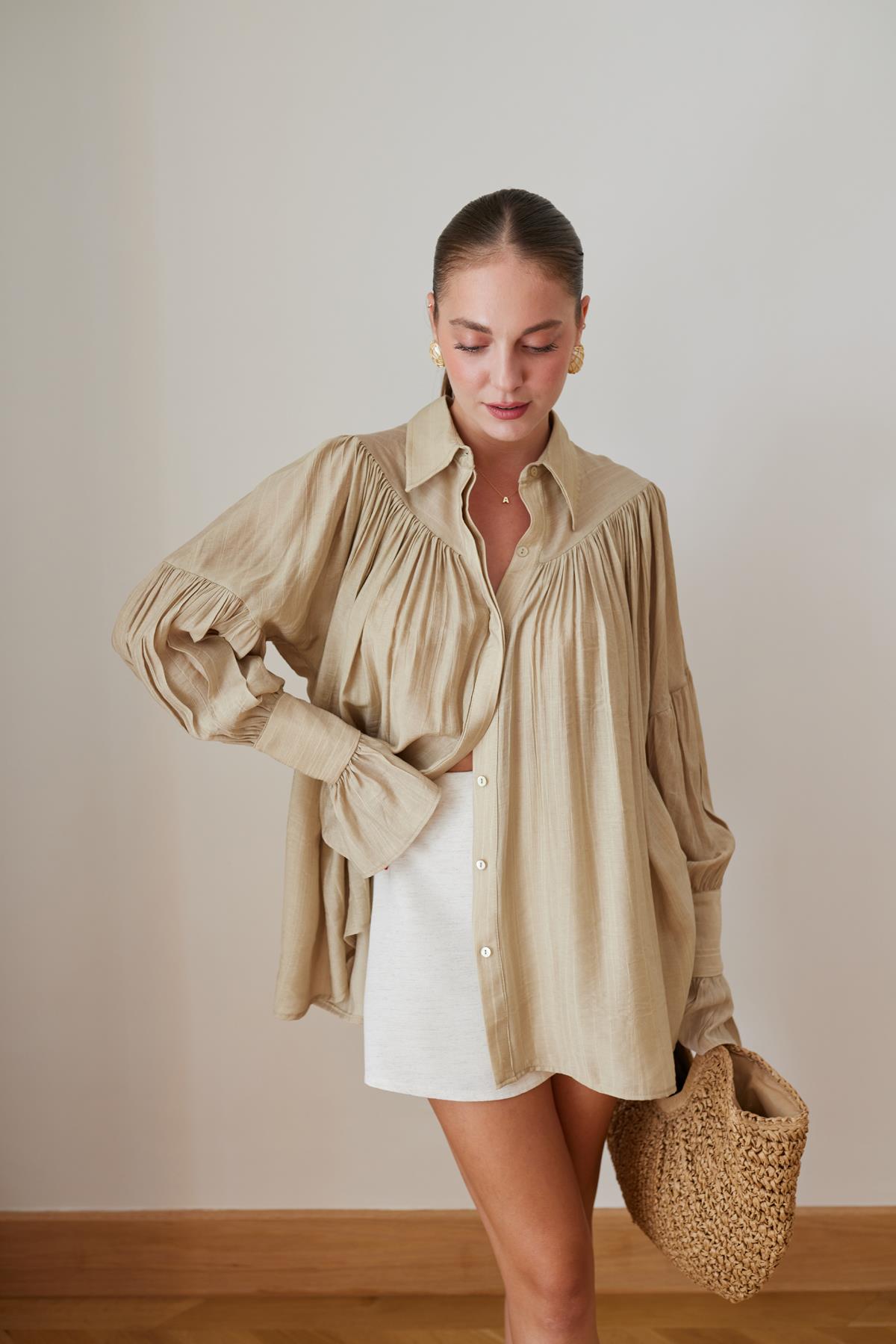 Taş Büzgü Ve Kol Detaylı Gömlek (103-00667)