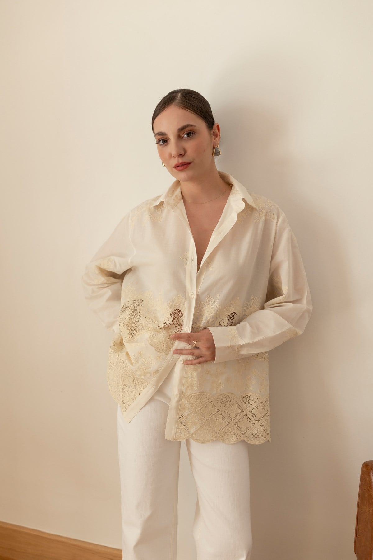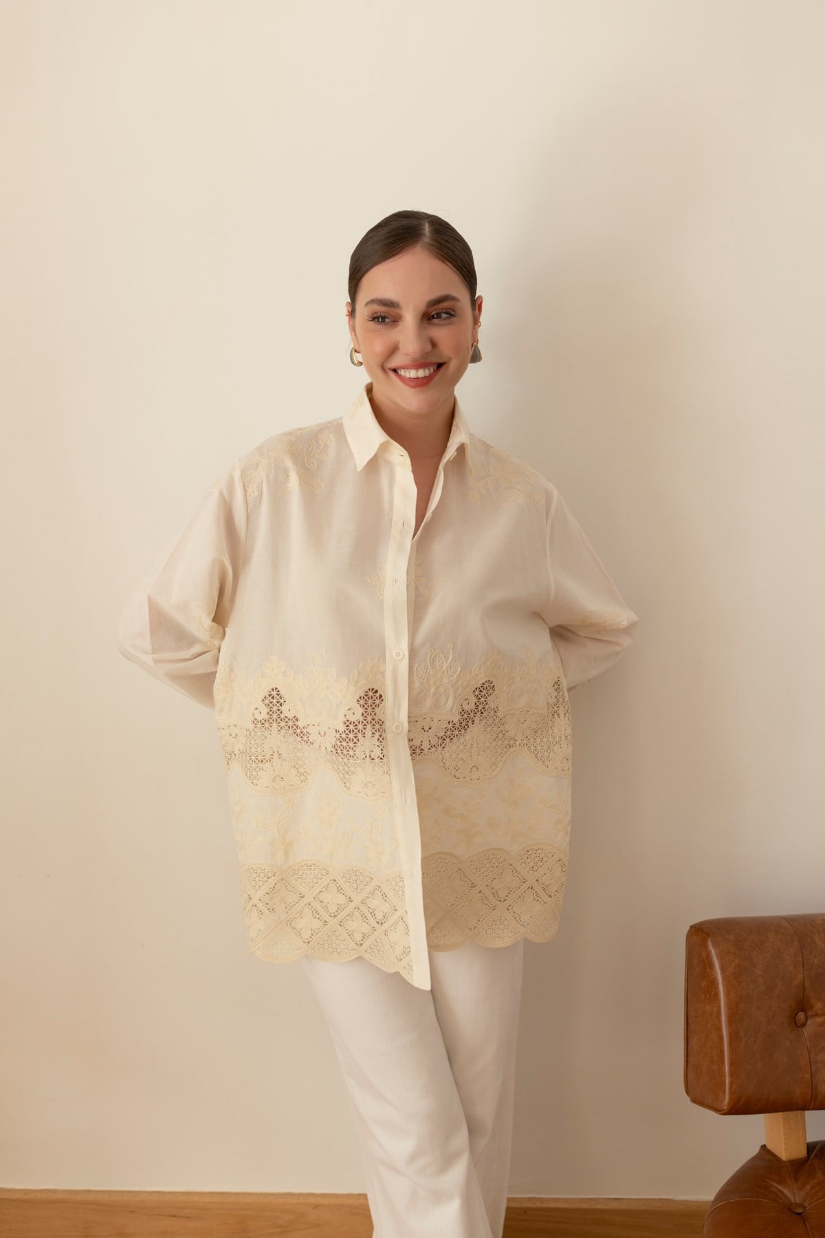Taş Dantel Detaylı Gömlek