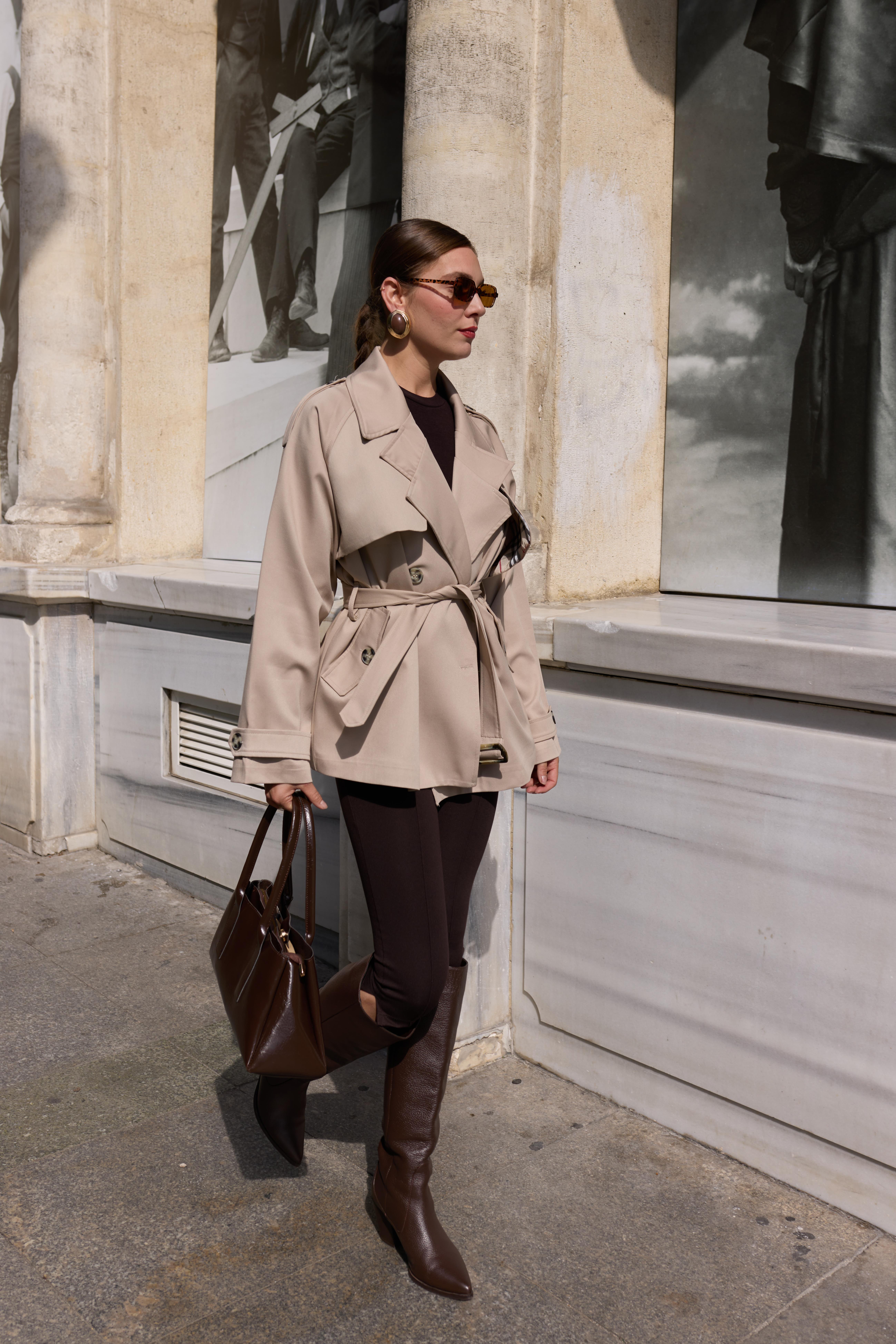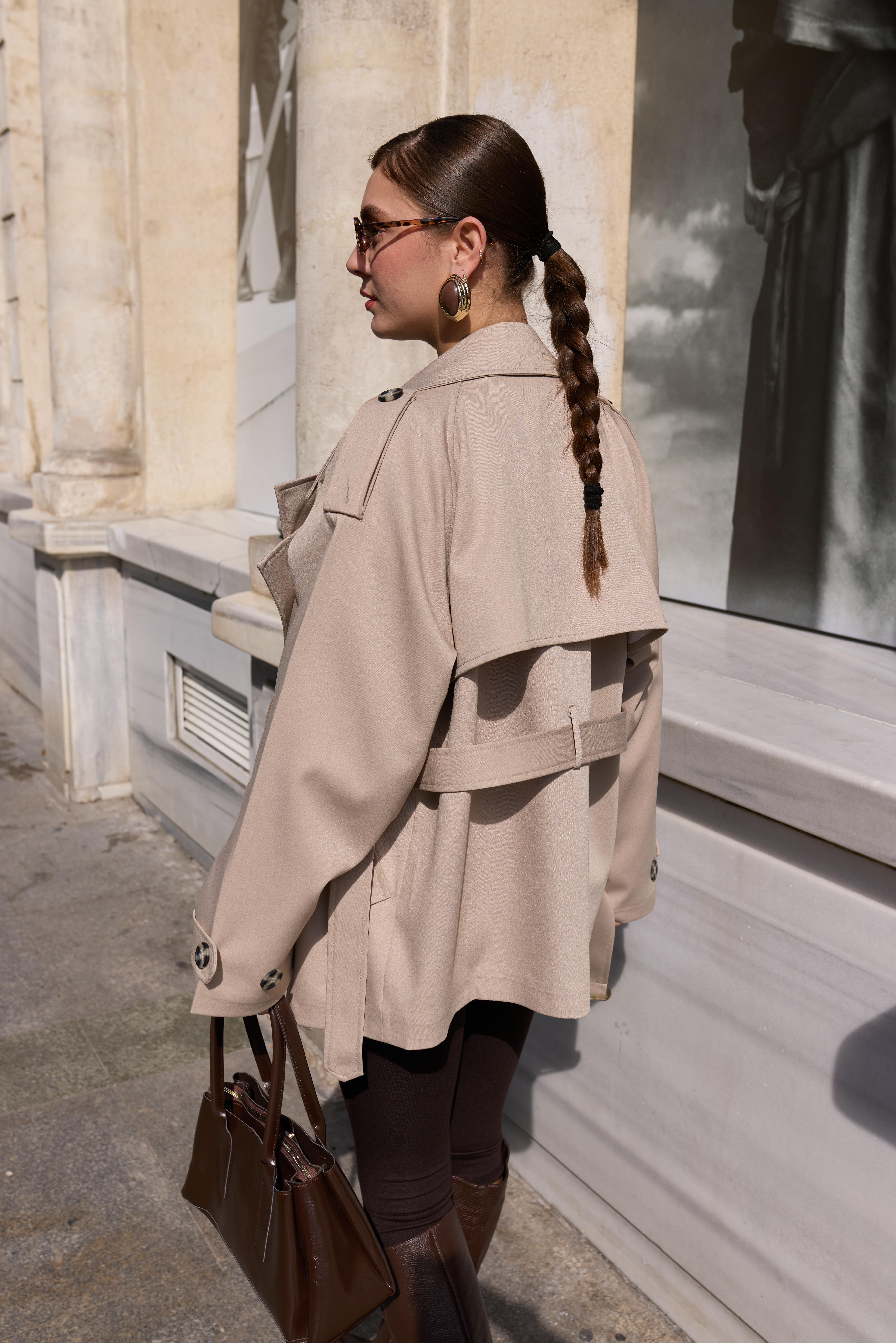 Haki İçi Ekose Astarlı Apolet Detaylı Kemik Düğmeli Trençkot Taş İçi Ekose Astarlı Apolet Detaylı Kemik Düğmeli Trençkot