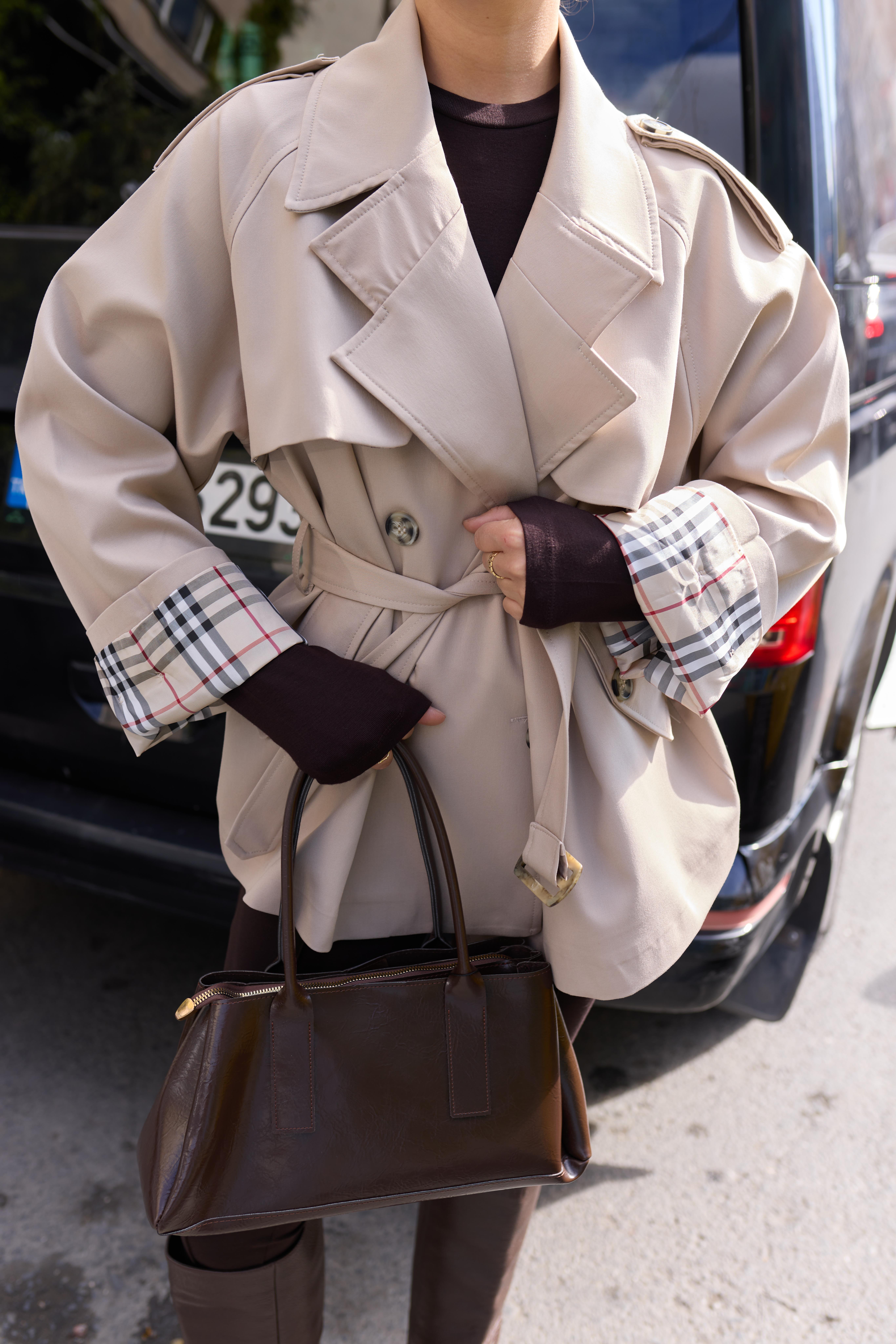 Taş İçi Ekose Astarlı Apolet Detaylı Kemik Düğmeli Trençkot (123-00071)