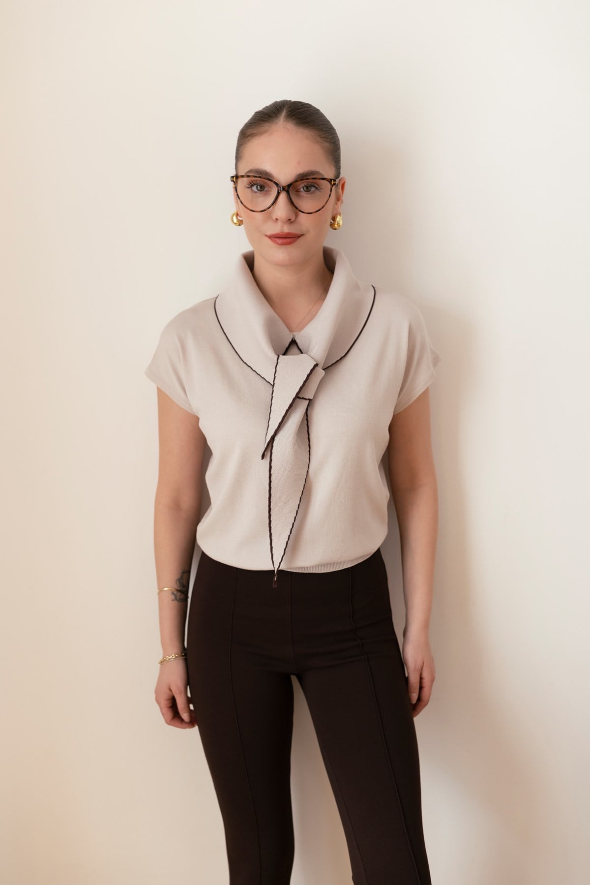 Sarı Yaka Detaylı Kısa Kol Triko Krem Yaka Detaylı Kısa Kol Triko Taş Yaka Detaylı Kısa Kol Triko