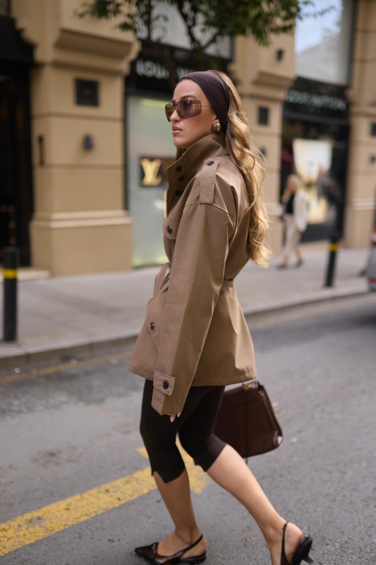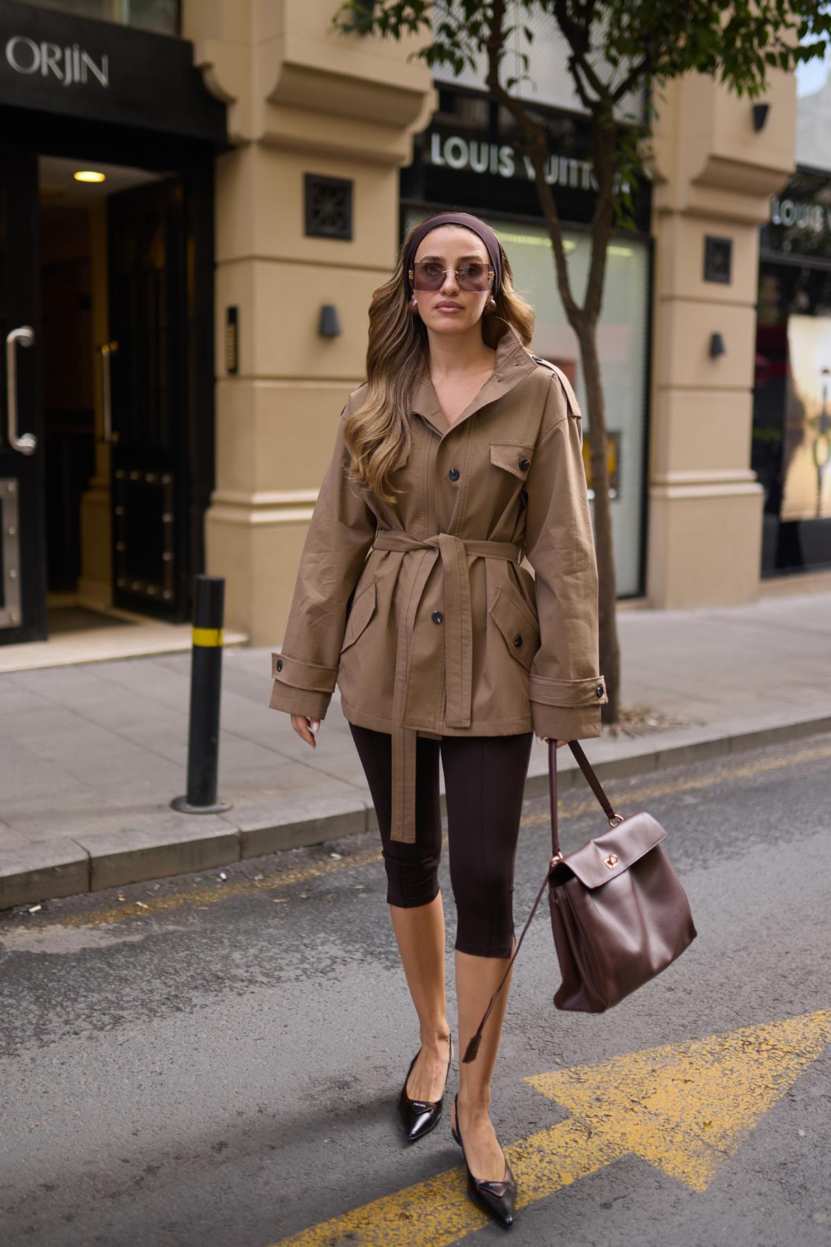 Haki Dik Yakaa Yandan Cepli Kuşaklı Trençkot Vizon Dik Yakaa Yandan Cepli Kuşaklı Trençkot