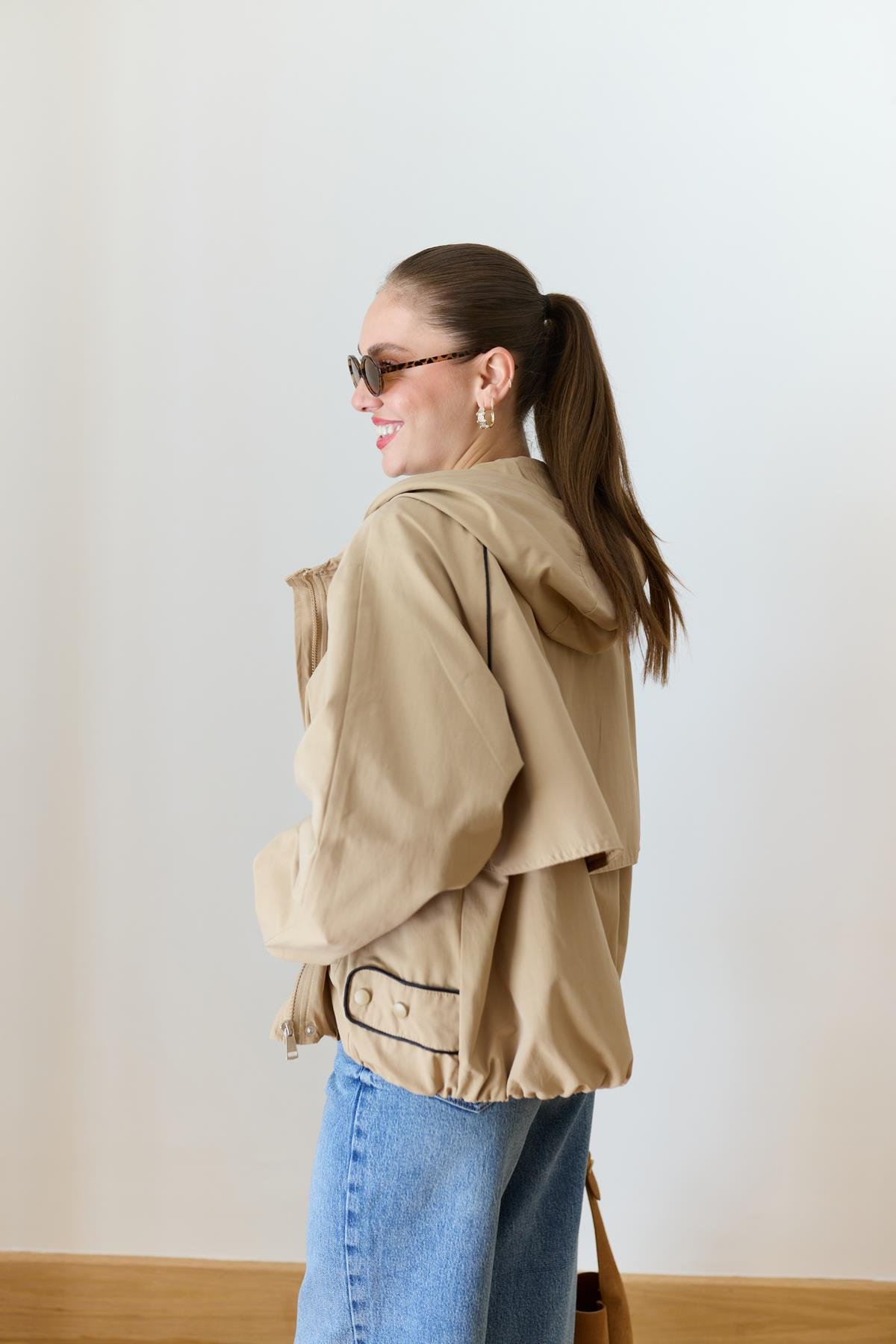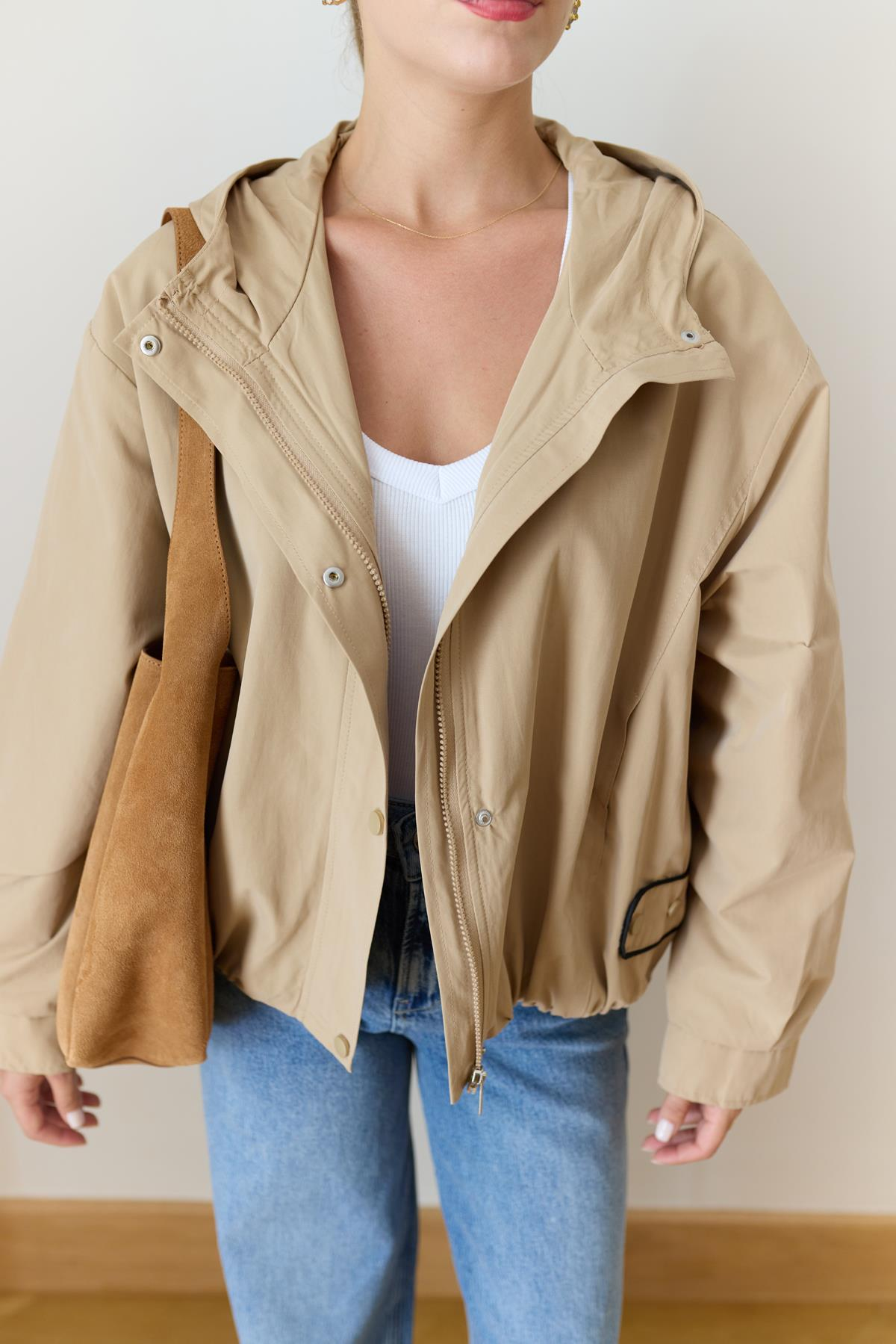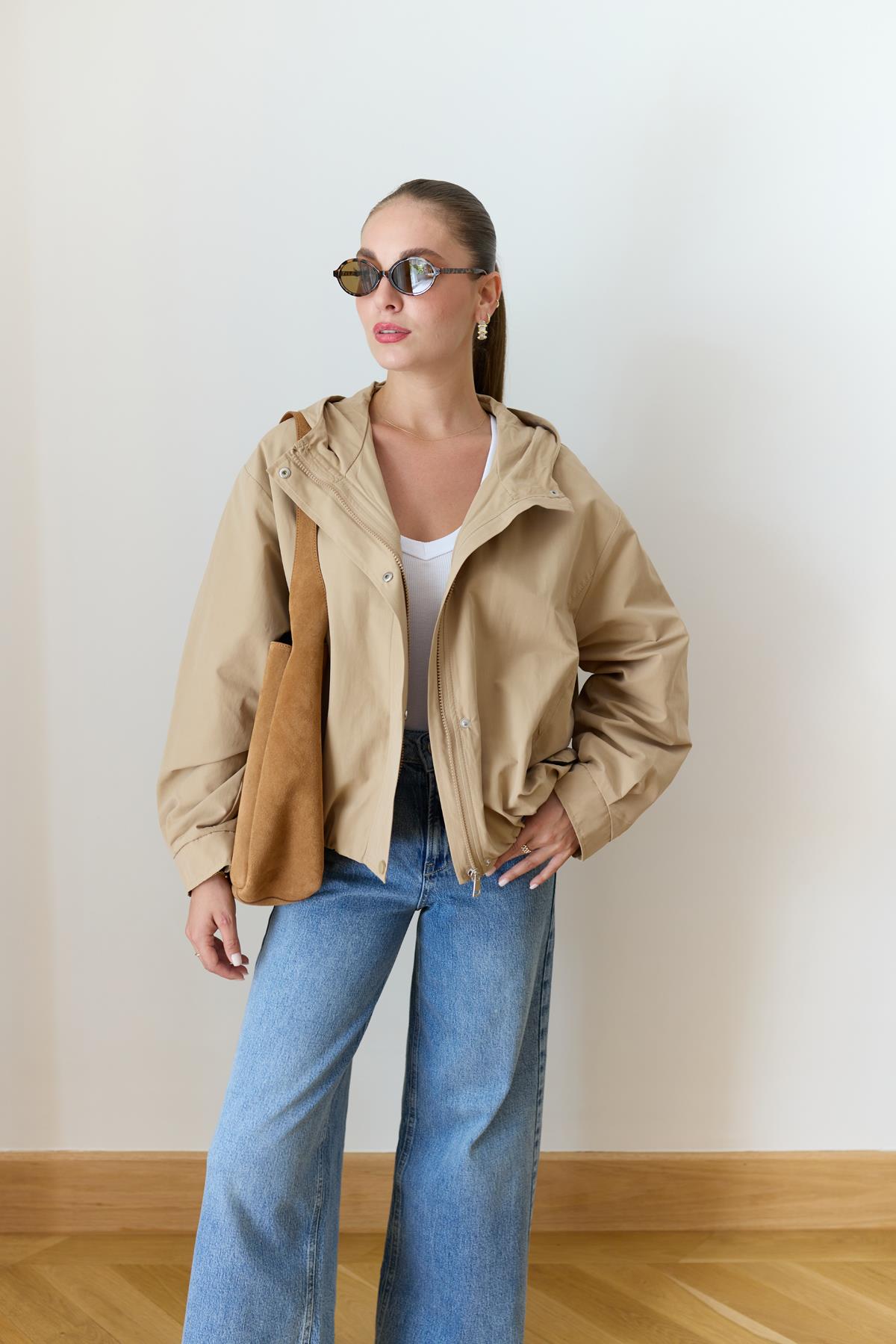 Vizon Kapişonlu Sırttan Parça Detaylı Astarlı Bomber Ceket